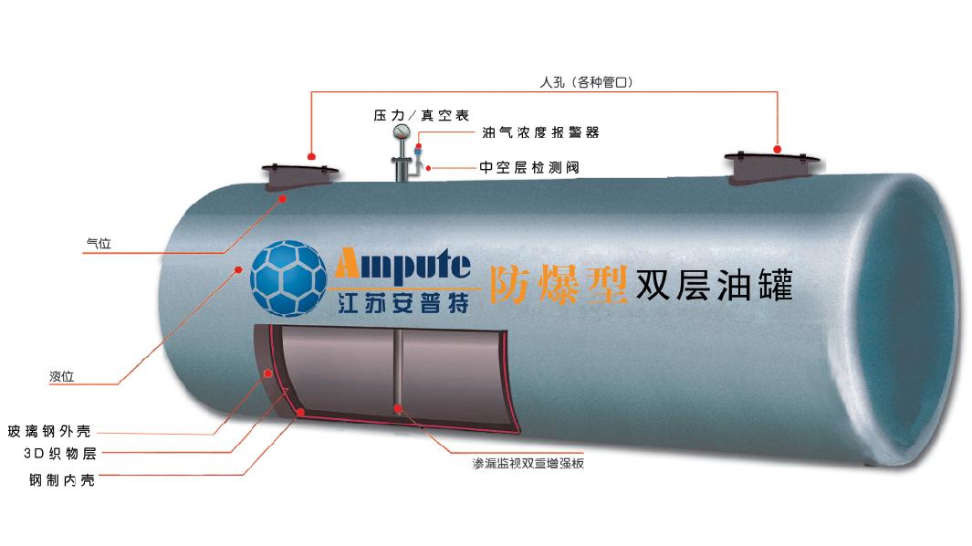 我公司开发研制的3D织物增强型双层油罐,由钢制内罐、3D纤维织物中空层和玻璃钢纤维外罐组成,具有安全经济环保三大特性,使用寿命是普通单层钢制..