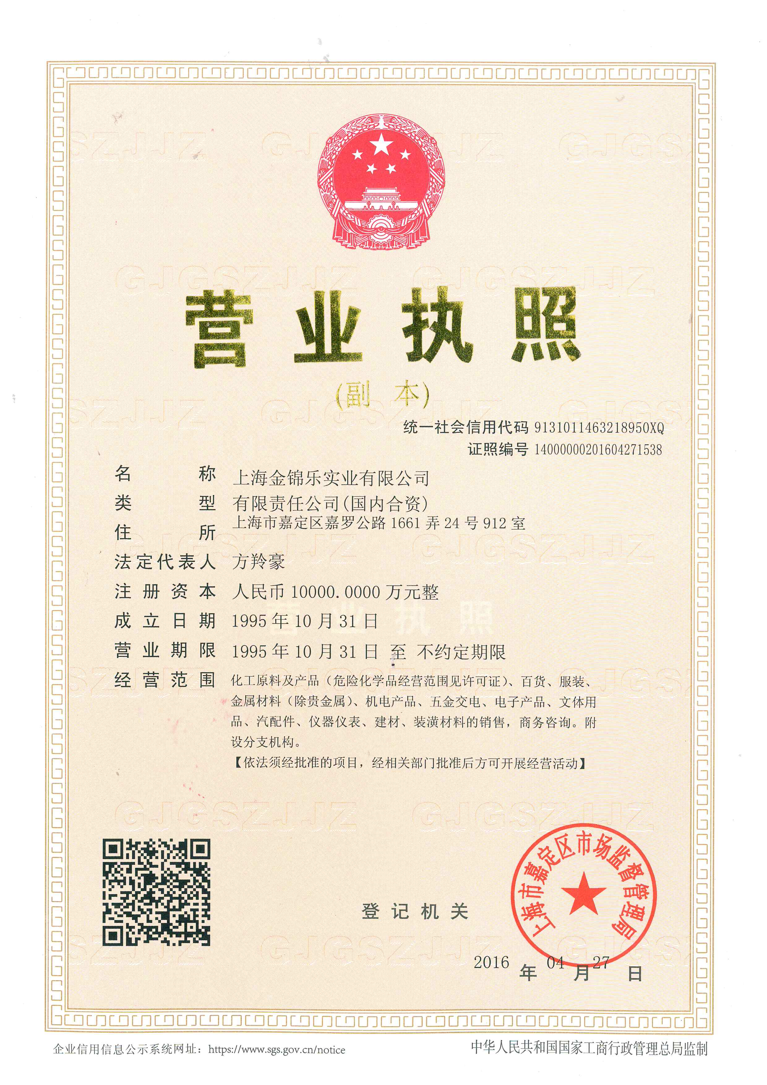 • 上海金锦乐实业有限公司