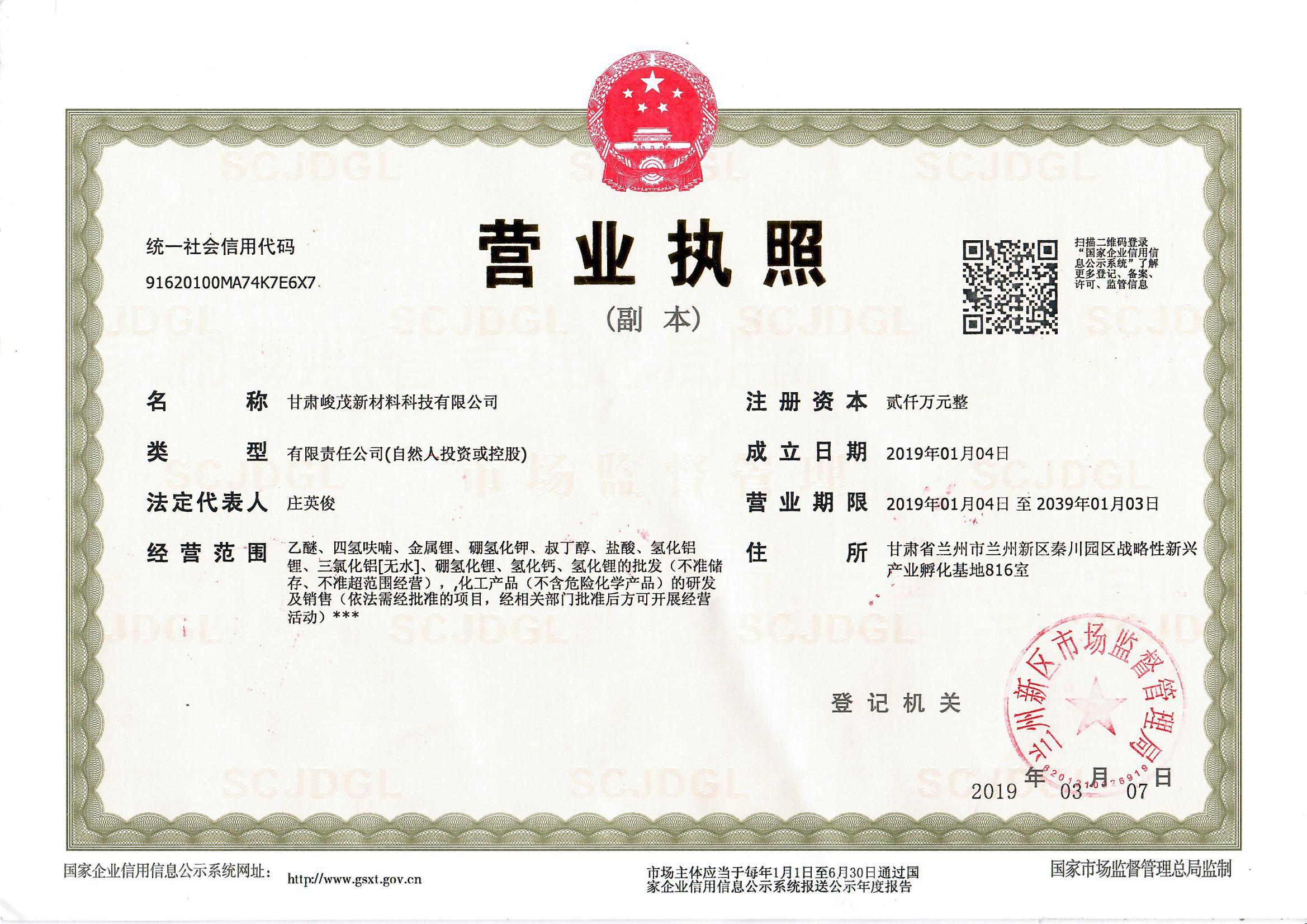 • 甘肃峻茂新材料科技有限公司