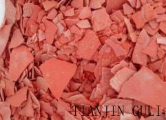 性 质:黄色或红色片状,吸潮性强,易溶于水,水溶液呈强碱性反应。触及皮肤和毛发时会造成灼