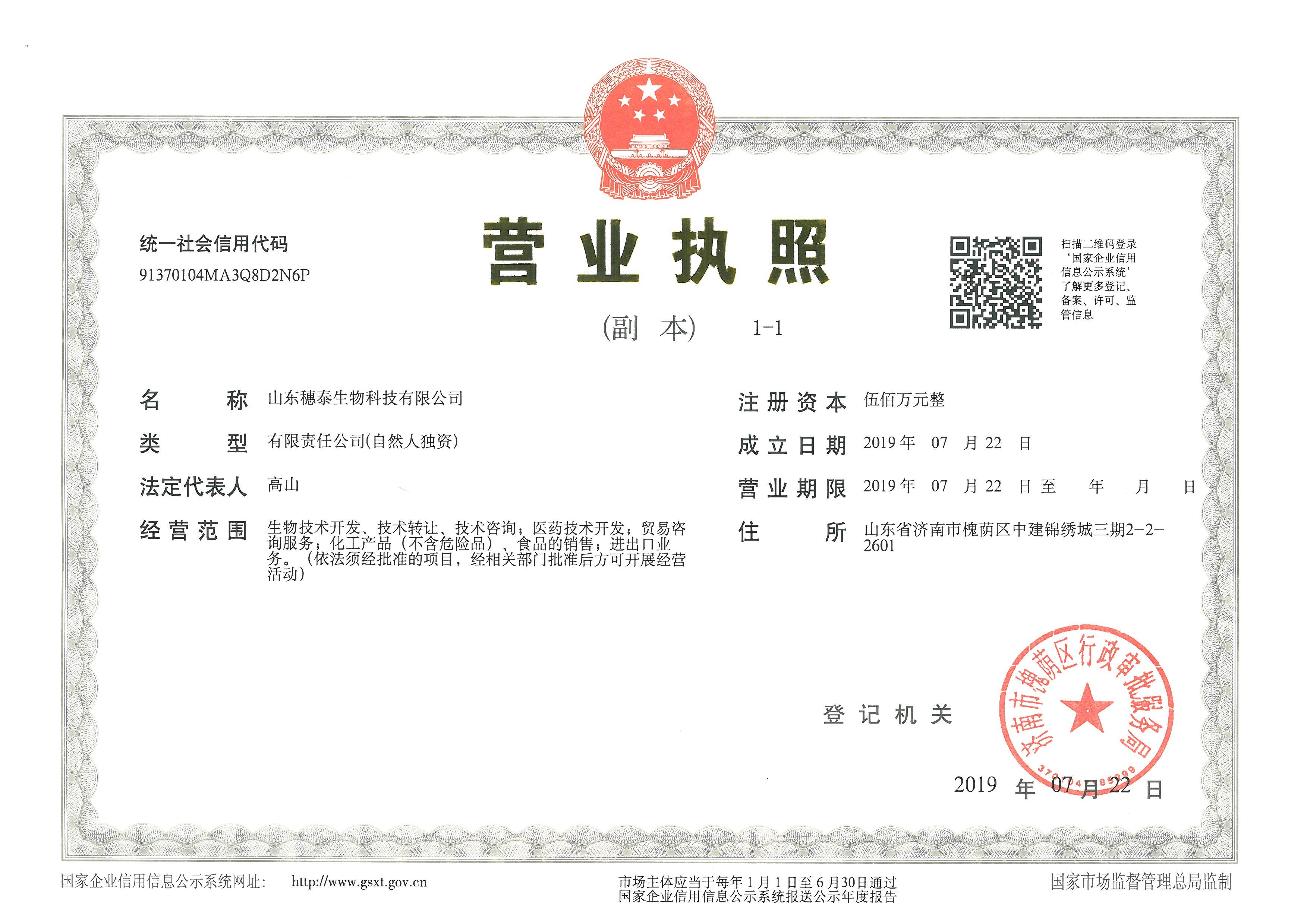 • 山东穗泰生物科技有限公司