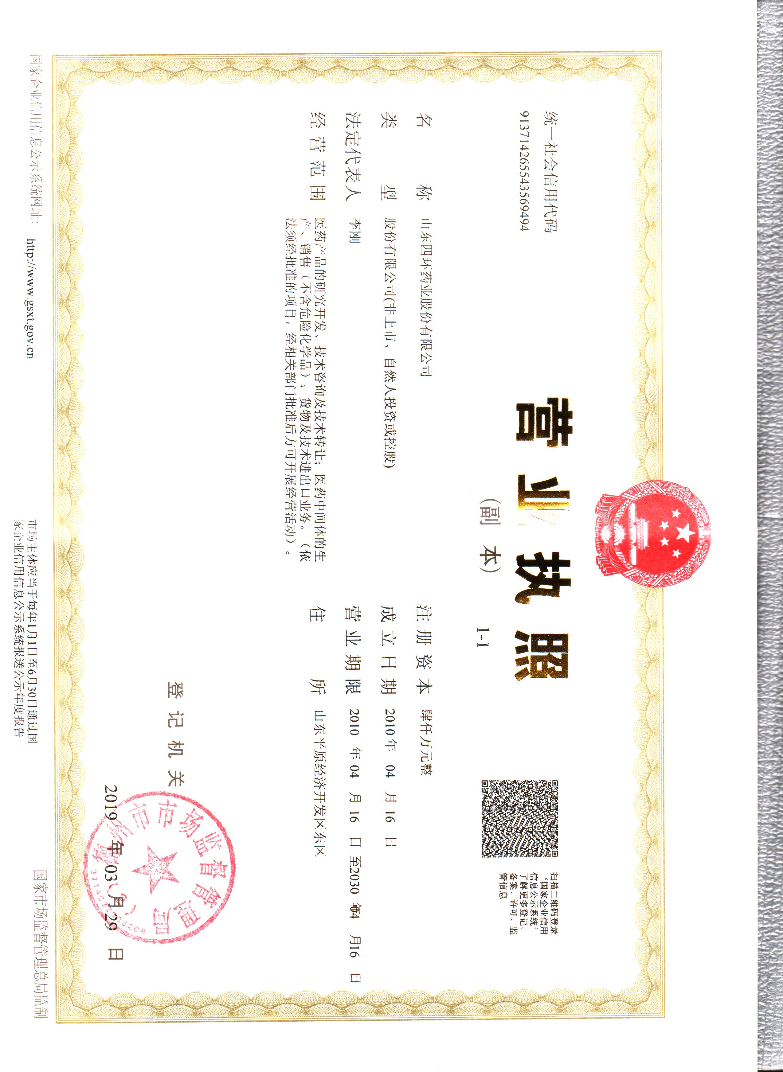 • 山东四环药业股份有限公司