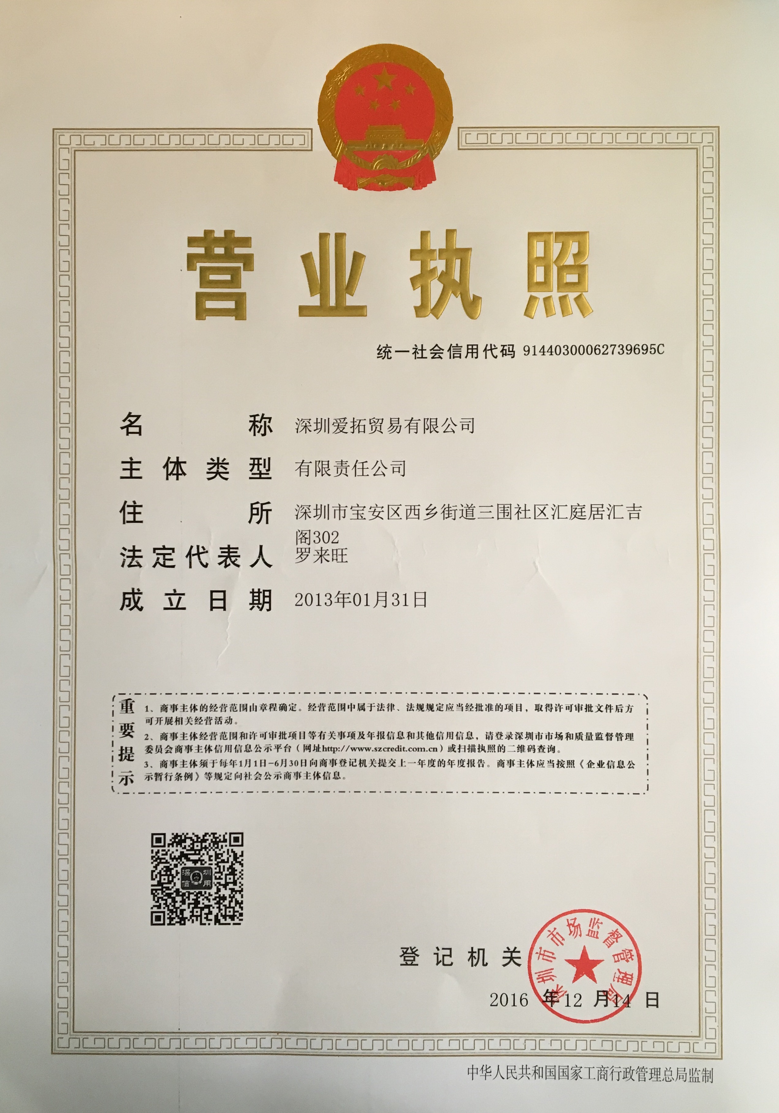 已认证内容: 营业执照