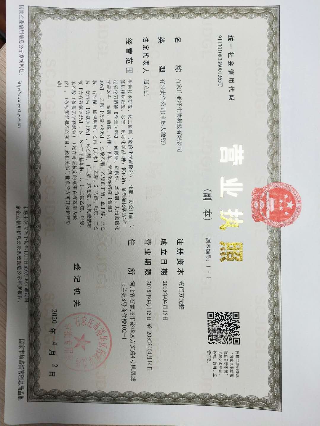 • 石家庄亚泽生物科技有限公司