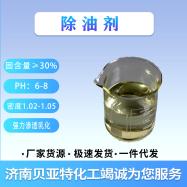 除油剂适用于高压喷淋清洗和超声波清洗。超声波清洗可稀释10-20倍; 高压水清洗可稀释20-30倍;设备拆封脱油和油污较重零部件清洗可稀释1-5倍,食品加工车间的植物油、牛奶、酱油等可稀释10-15倍,清洗汽车等设备外表可稀释10-20倍,清洗工作服、地板、壁纸等可稀释20-30倍。