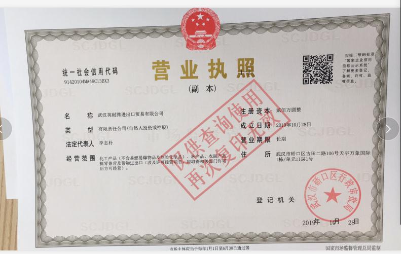 • 武汉英耐腾进出口贸易有限公司
