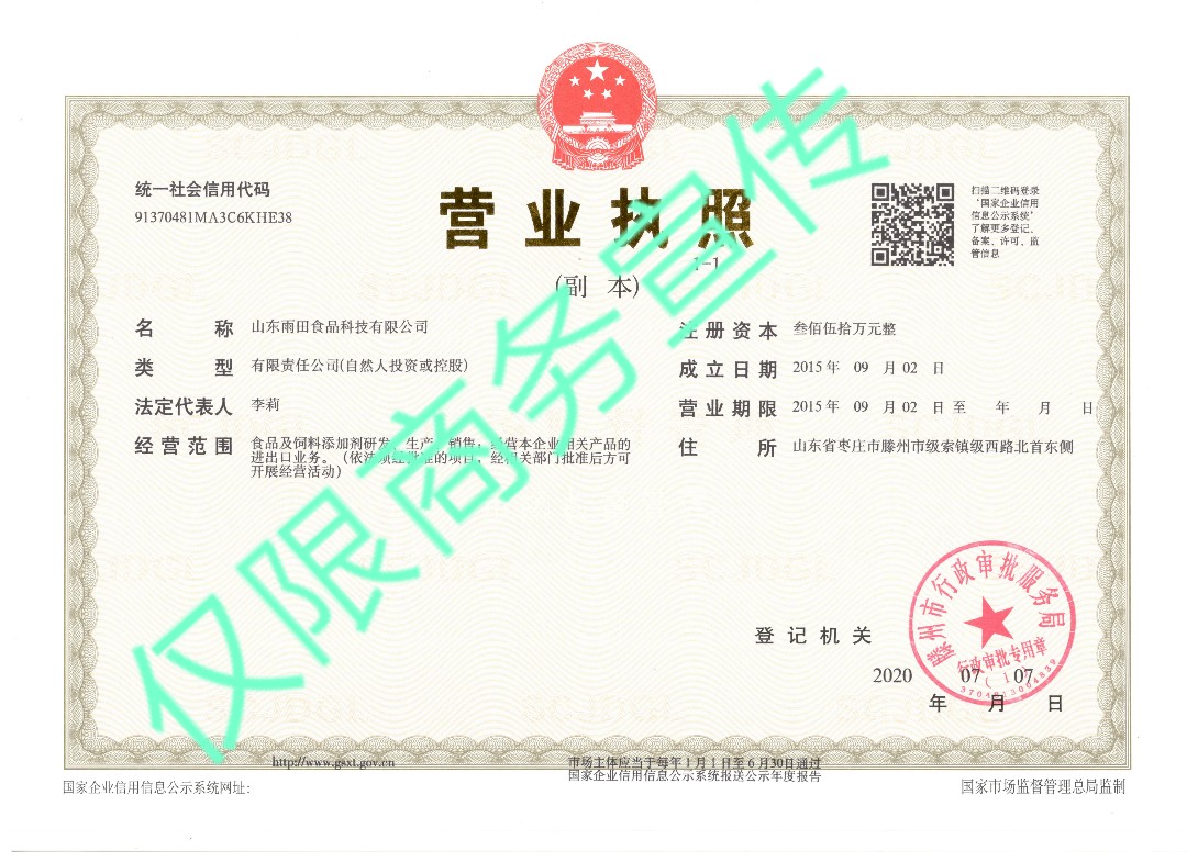 • 山东雨田食品科技有限公司
