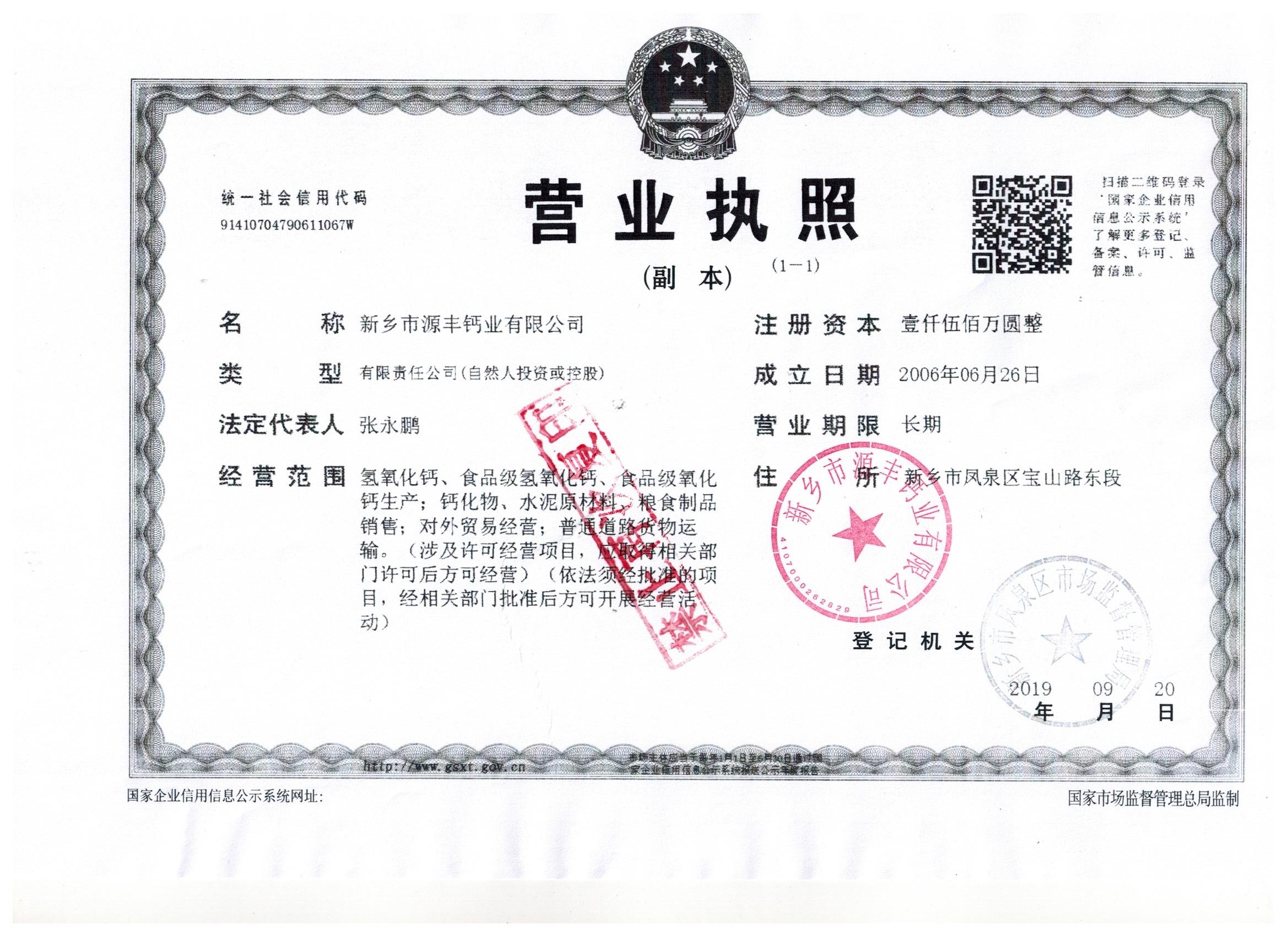 • 新乡市源丰钙业有限公司