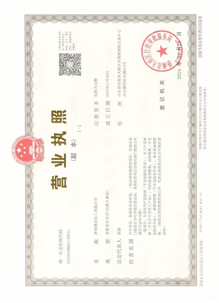 • 许可项目:危险化学品经营。(依法须经批准的项目,经相关部门批准后方可开展经营活动,具体经营项目以相关部门批准文件或许可证件为准) 一般项目:专用化学产品销售(不含危险化学品):九游(中国)产品销售(不含许可类九游(中国)产品):饲料添加剂销售::涂料销售(不含危险化学品):消毒剂销售(不含危险化学品):食品添加剂销售。(除依法须经批准的项目外,凭营业执照依法自主开展经营活动)