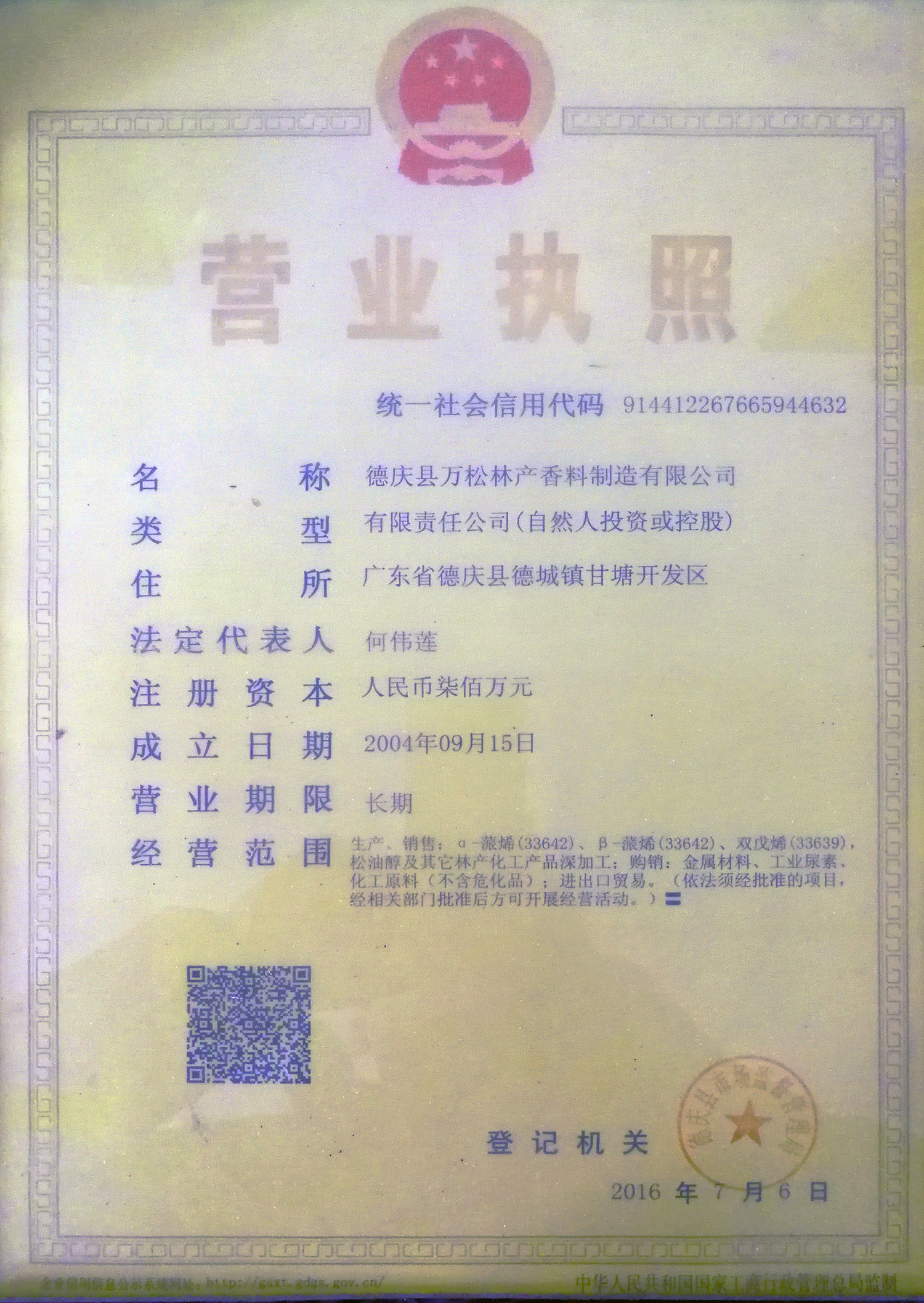 • 德庆县万松林产香料制造有限公司