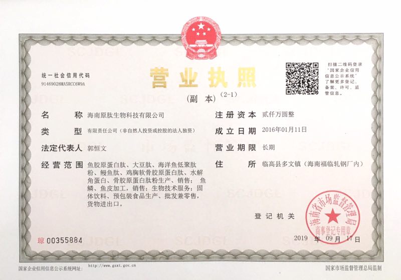 • 海南原肽生物科技有限公司
