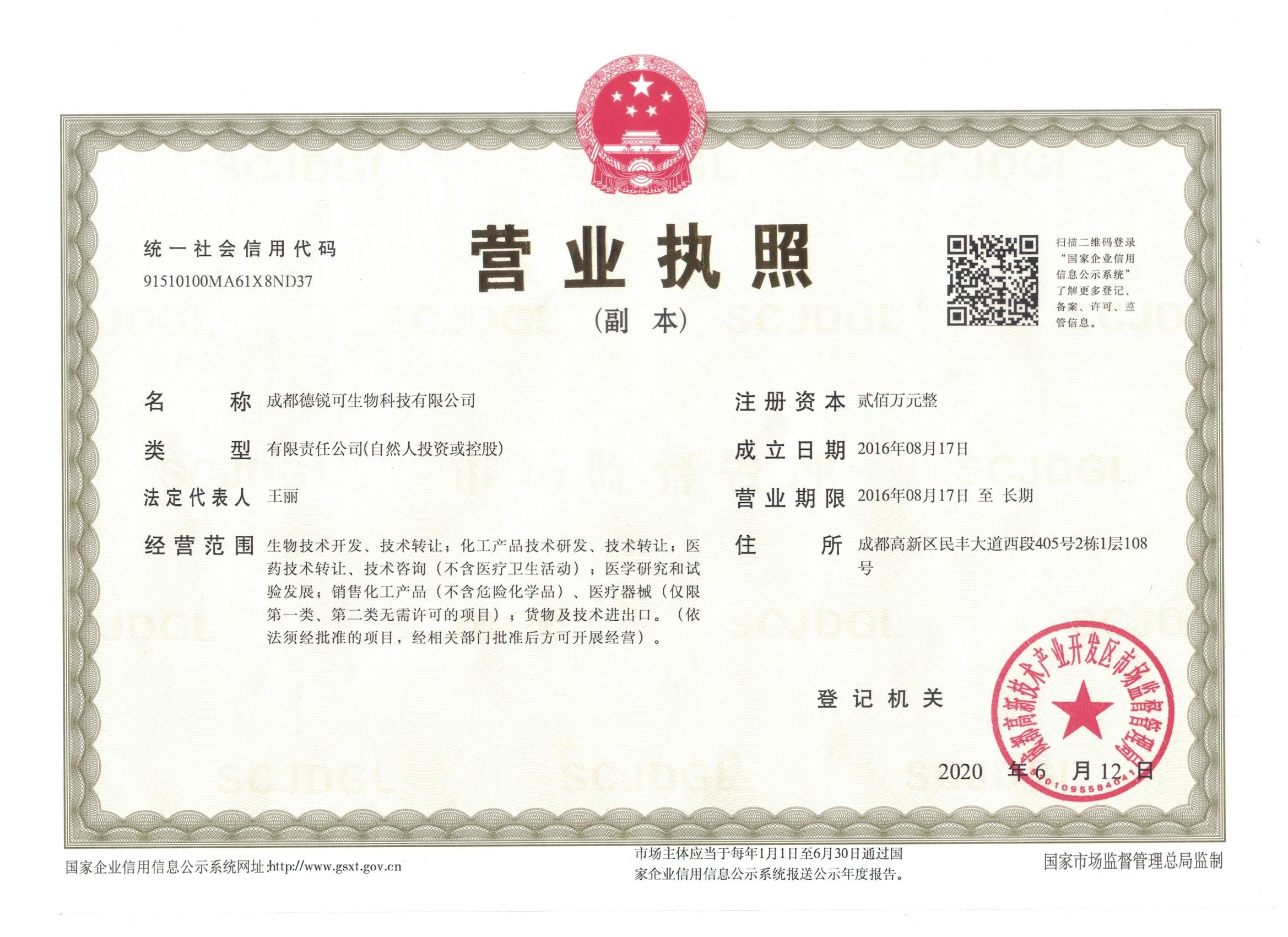 • 成都德锐可生物科技有限公司