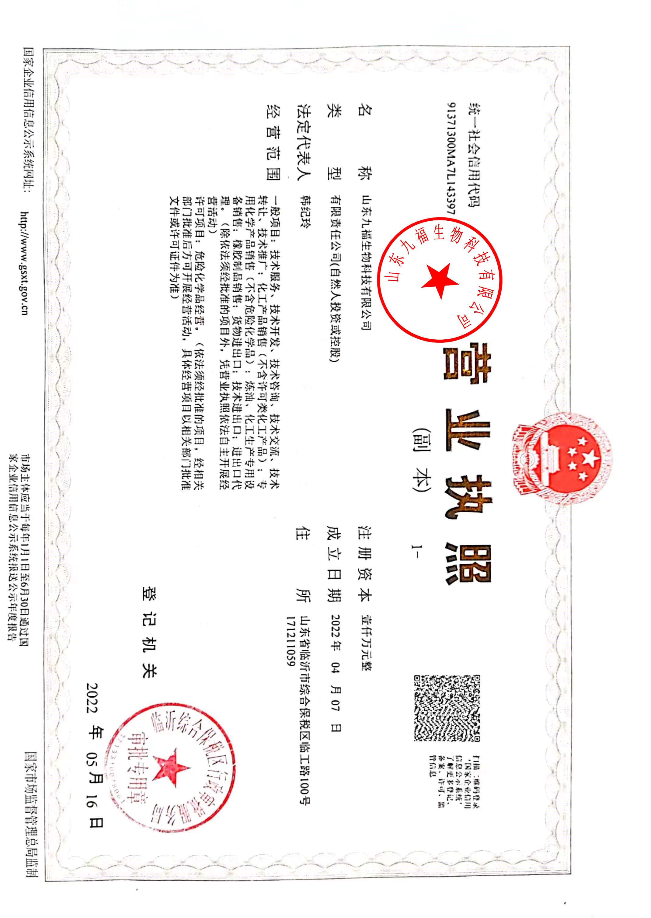 • 山东九福生物科技有限公司