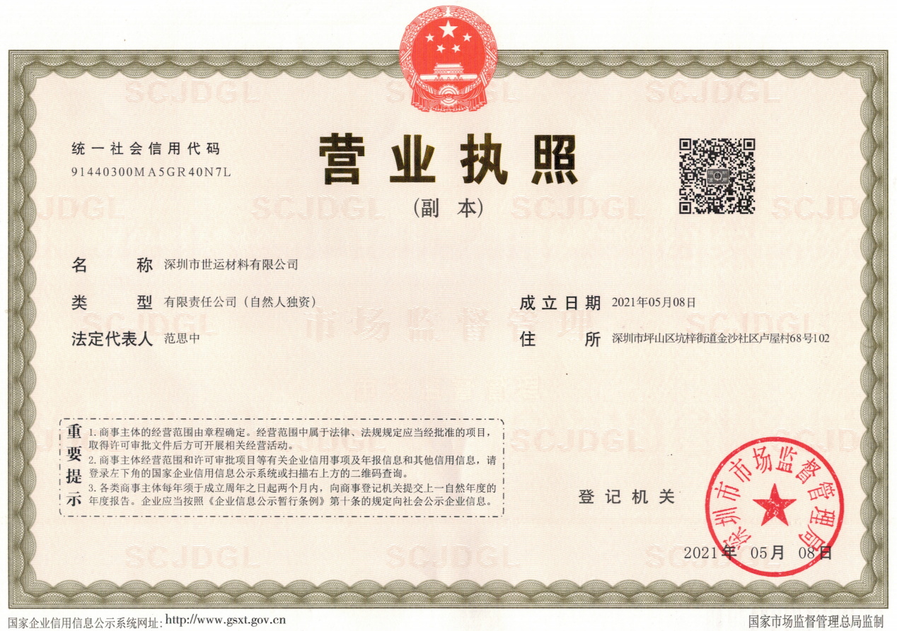 • 深圳市世运材料有限公司