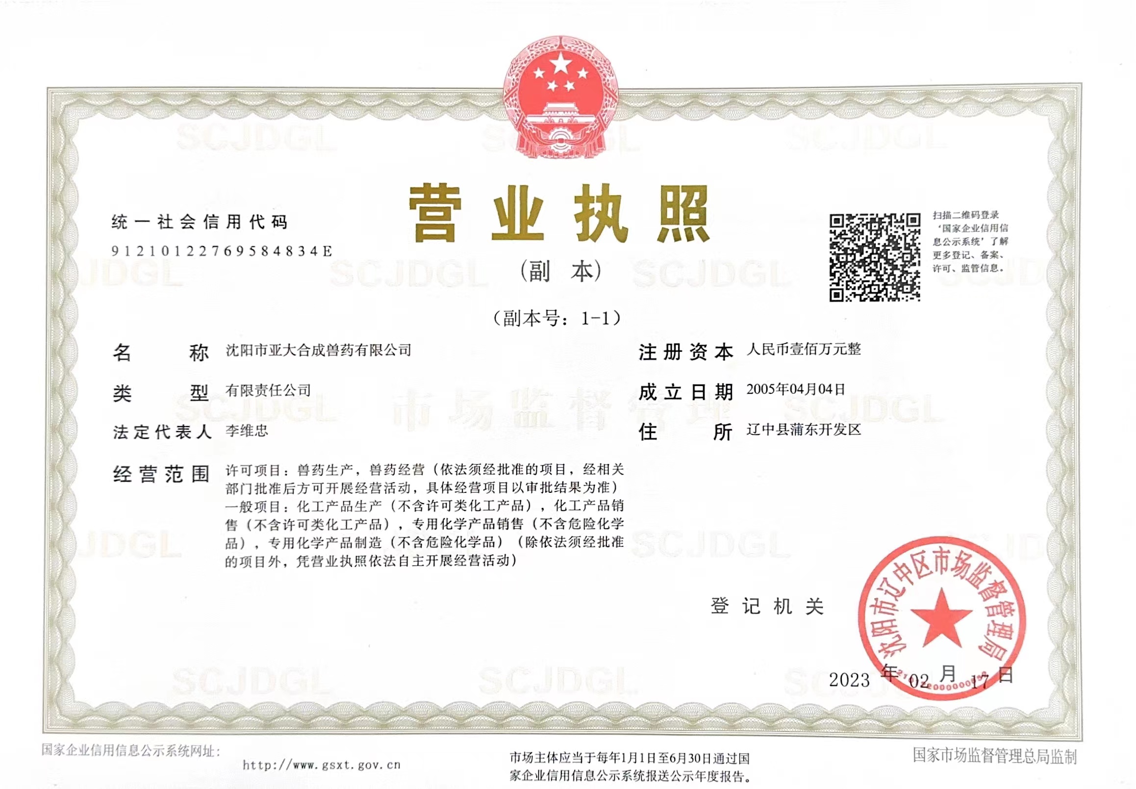 • 沈阳市亚大合成兽药有限公司