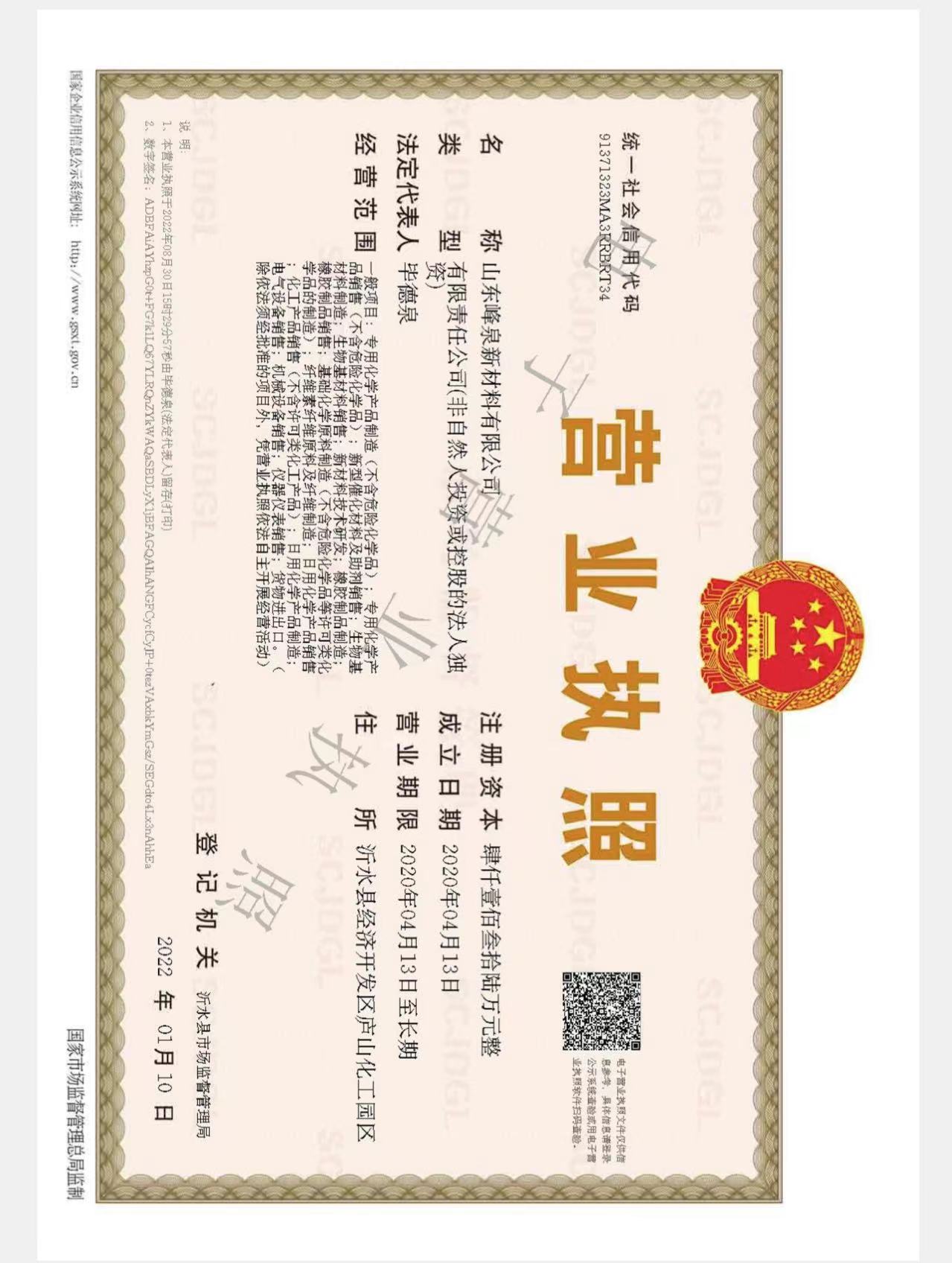 • 山东峰泉新材料有限公司