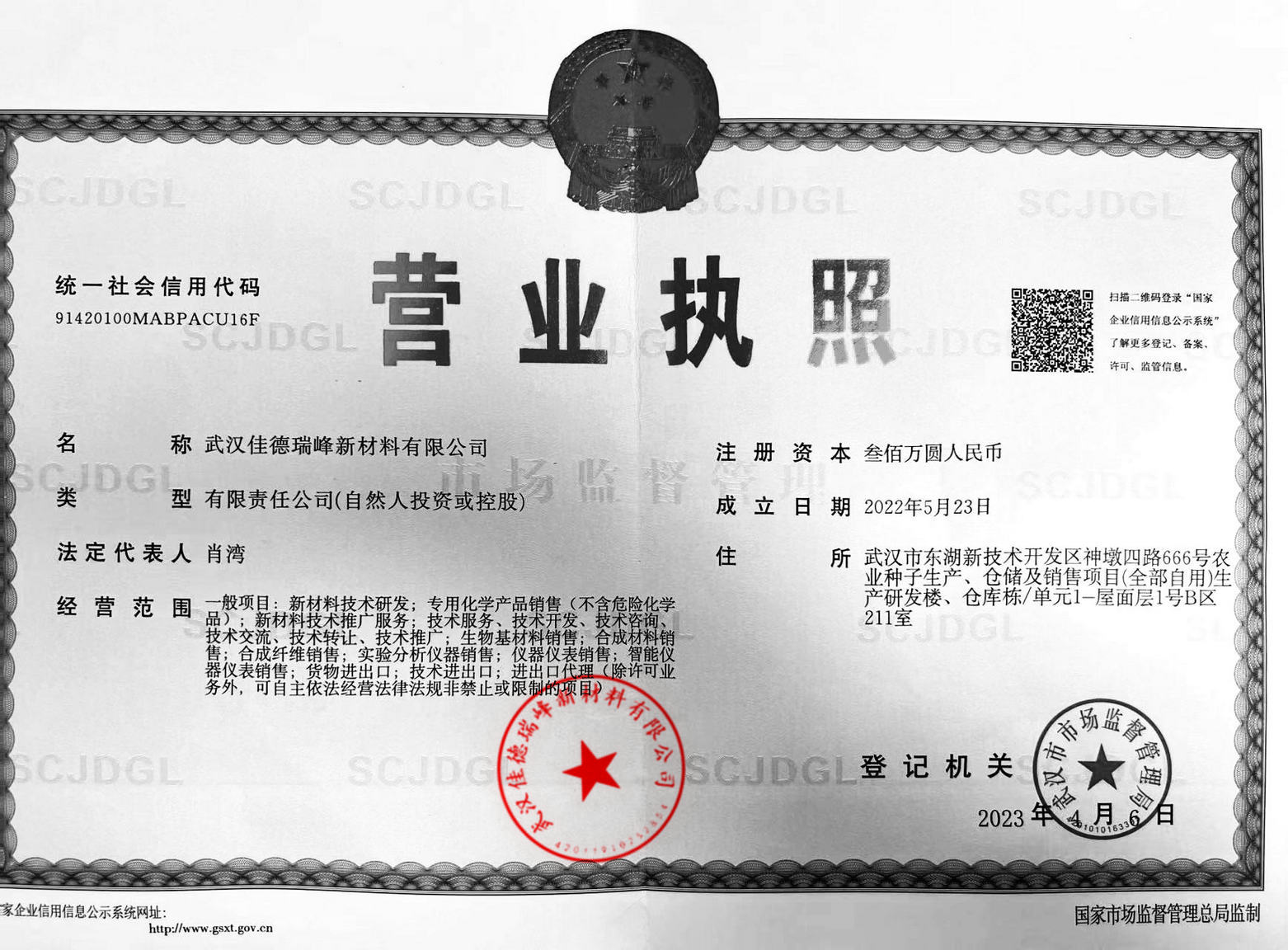 • 武汉佳德瑞峰新材料有限公司