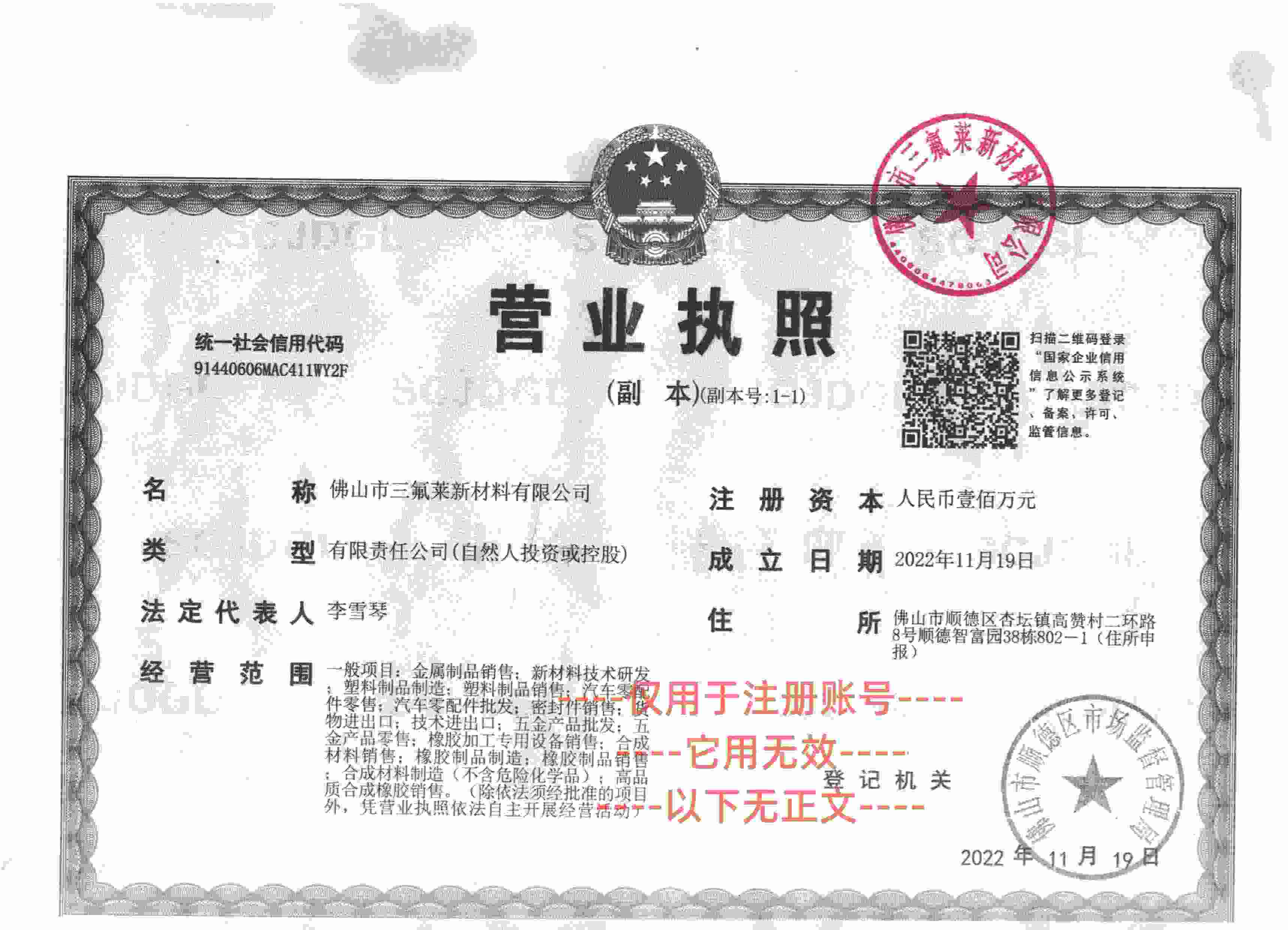• 佛山市三氟莱新材料有限公司