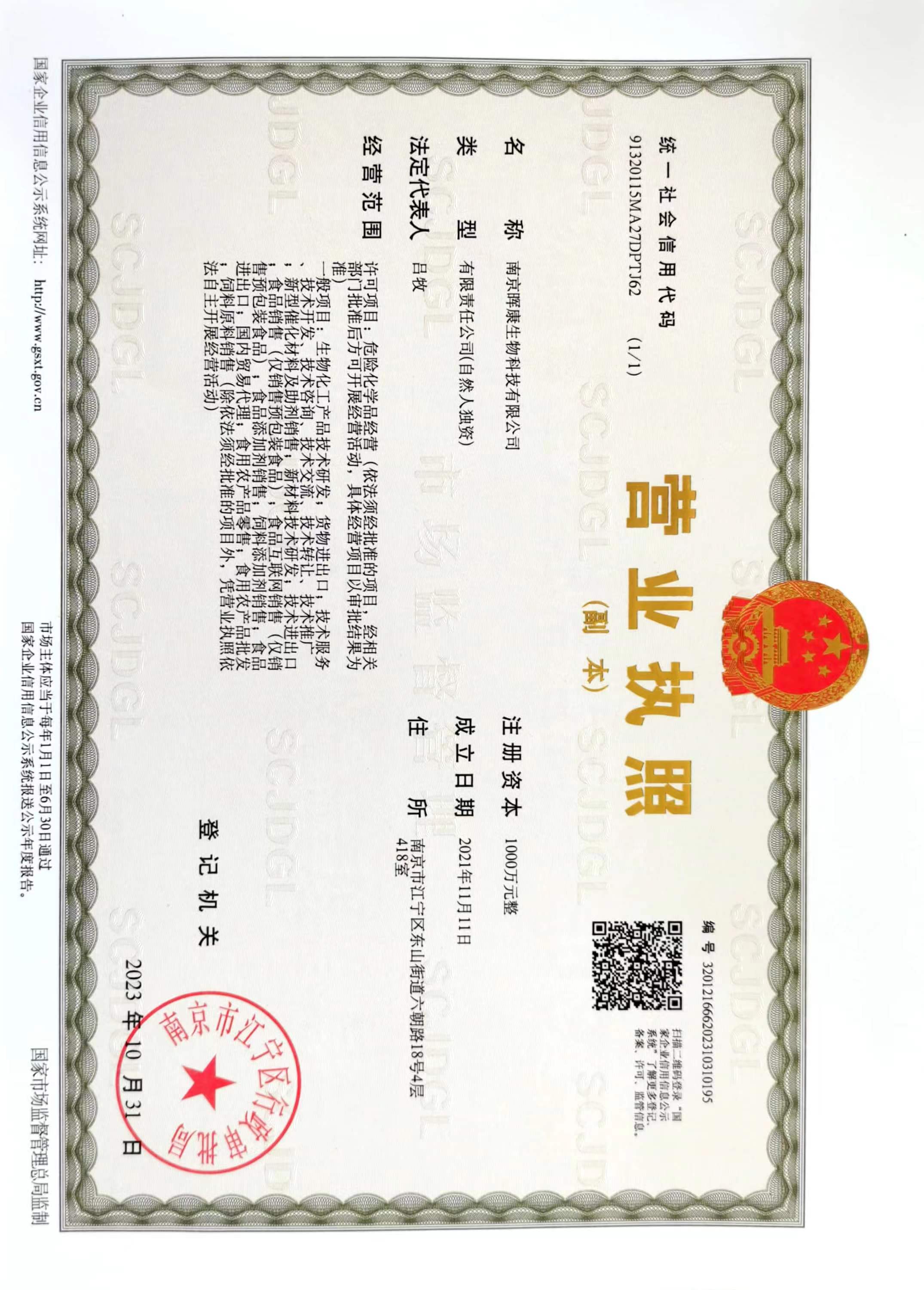 • 许可项目:危险化学品经营(依法须经批准的项目,经相关部门批准后方可开展经营活动,具体经营项目以审批结果为准)一般项目:生物九游(中国)产品技术研发;货物进出口;技术服务、技术开发、技术咨询、技术交流、技术转让、技术推广;新型催化材料及助剂销售;新材料技术研发;技术进出口;食品销售(仅销售预包装食品);食品互联网销售(仅销售预包装食品);食品添加剂销售;饲料添加剂销售;食品进出口;国内贸易代理;食用农产品零售;食用农产品批发;饲料原料销售(除依法须经批准的项目外,凭营业执照依法自主开展经营活动)