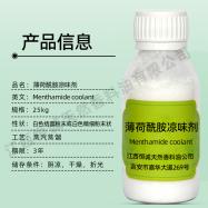 【CAS编号】51115-67-4【熔 点】62-64(℃)【外 观】白色结晶粉末【香 气】薄荷香味,无刺激性辣味【含 量】WS-23的含量可达≧99.0%【应 用】广泛用于食品、饮料、糖果、化妆品、烟制品、医药等【储 存】阴凉干燥,密封遮光凉味剂WS23的化学名称为N,2,3-三甲基-2-(1-甲基乙基)丁酰胺或者N,2,3.三甲基-2-异丙基丁酰胺。英文名称为N,2,3-trimethyl-2isopropl butanamide.简称为WS-23 。分子式:C10H21NO,分子量:171.29。其特点为清怡、持久、新鲜、无刺激性辣味、无苦味、用量低。