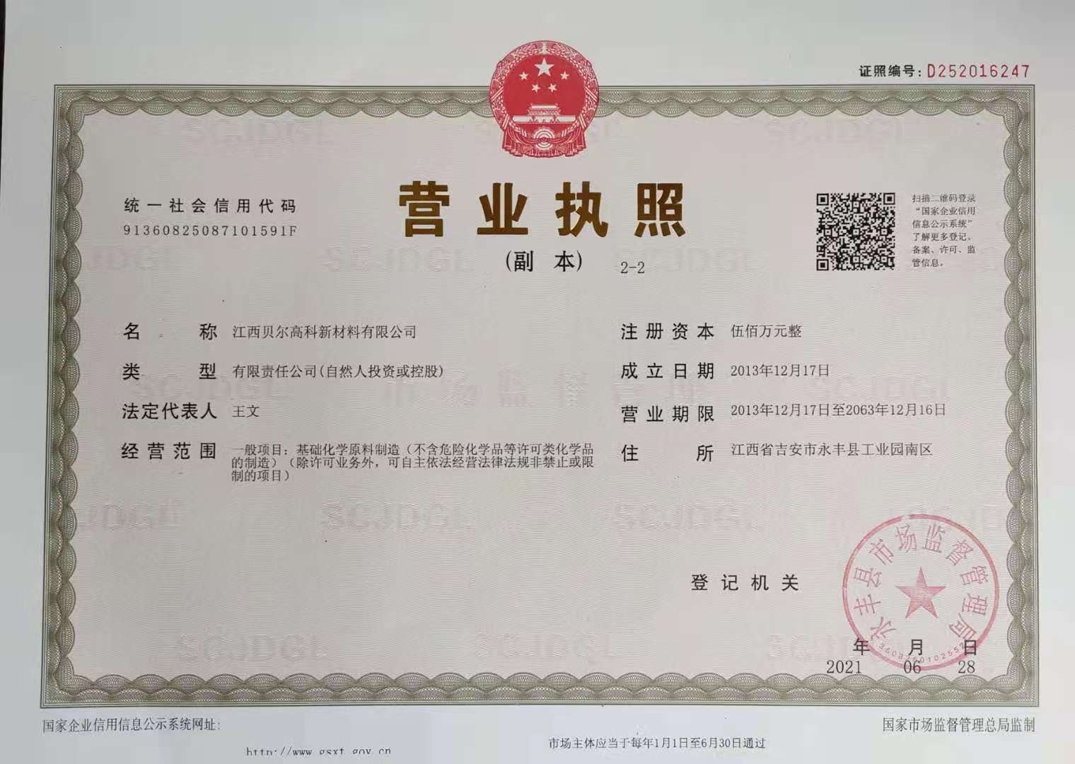 • 一般项目:基础化学原料制造(不含危险化学品等许可类化学品的制造)(除许可业务外,可自主依法经营法律法规非禁止或限制的项目)