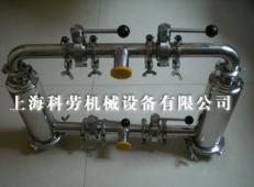管道式双联过滤器 | 管道式双筒过滤器 ※设备应用与特性 管道式双联过滤器适用于过滤鲜奶、糖液、饮料、胶液、中草药液、CIP清..